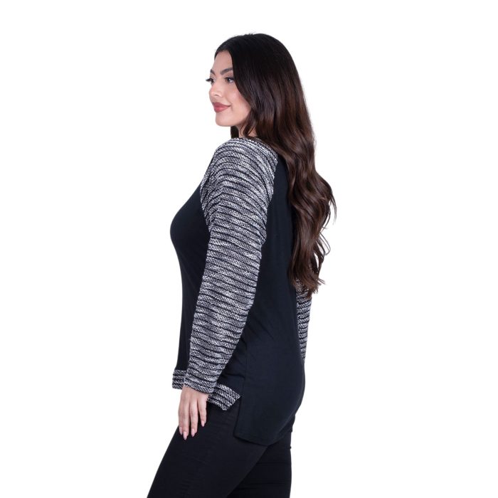 Gomore Μπλούζα Μαύρη Με Ασπρόμαυρο Σχέδιο Γυναικεία Ασύμμετρη Αll Day – GM-04115