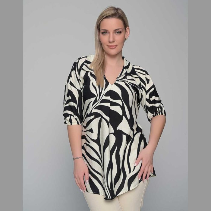 Gomore Μπλούζα Εκρού Με Μαύρο Μοτίβο Γυναικεία Κοντομάνικη All Day – 52249-BC
