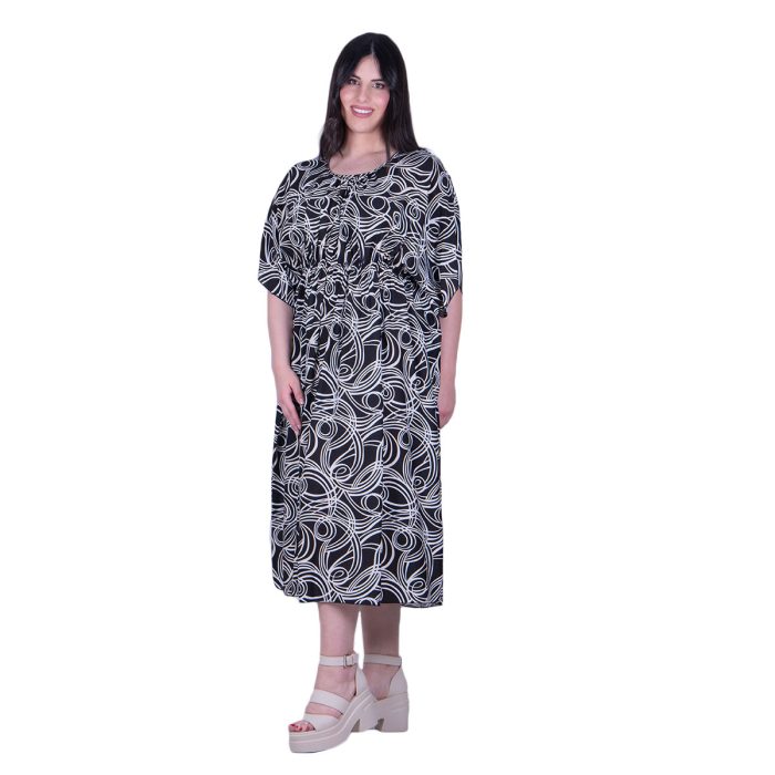 Gomore Φόρεμα Μαύρο Με Εκρού Σχέδια Γυναικείο Midi Εβαζέ Τρουακαρ Καθημερινό – GM-52682