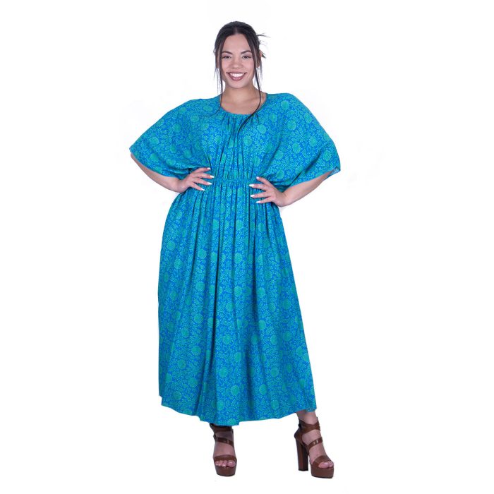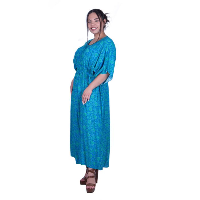 Gomore Φόρεμα Τιρκουαζ Με Strass Σχέδιο Γυναικείο Μaxi Κοντομάνικο Ντεκολτέ All Day – 52666-TR
