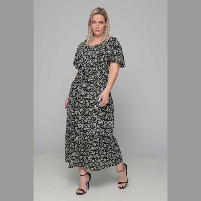 Gomore Φόρεμα Μαύρο Με Γκρι Floral Γυναικείο Μακρύ Εβαζέ Κοντομάνικο All Day – 52679-BC