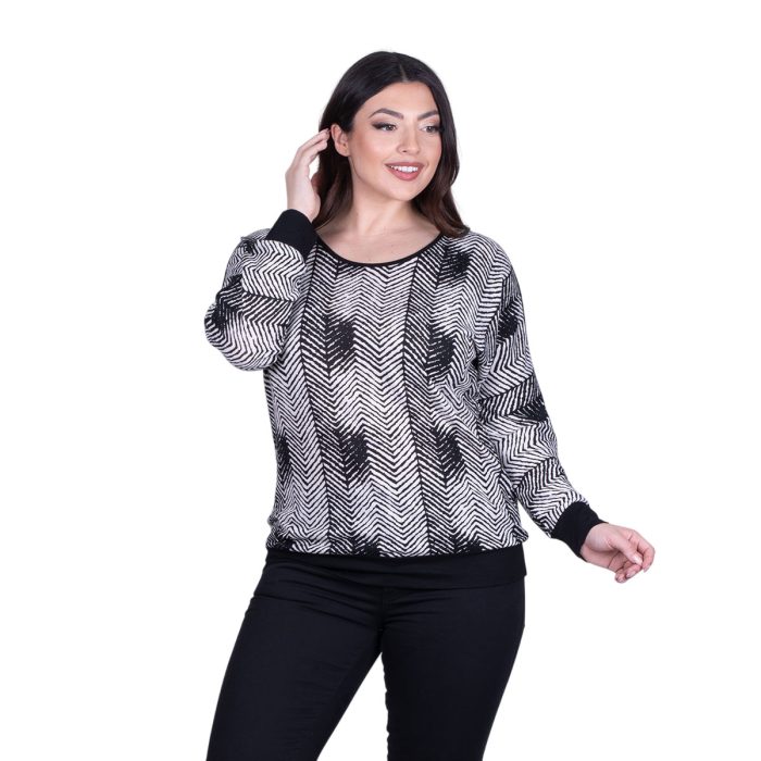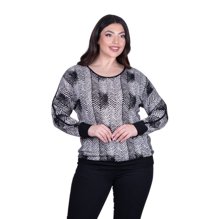 Gomore Μπλούζα Ασπρόμαυρη Ψαροκόκαλο Γυναικεία Καθημερινή – GM-94127-D