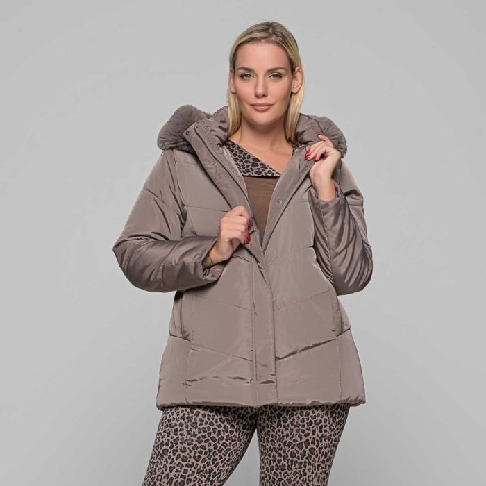 Gomore Μπουφάν Μόκα Γυναικείο Με Κουκούλα Casual All Day – 24405-M