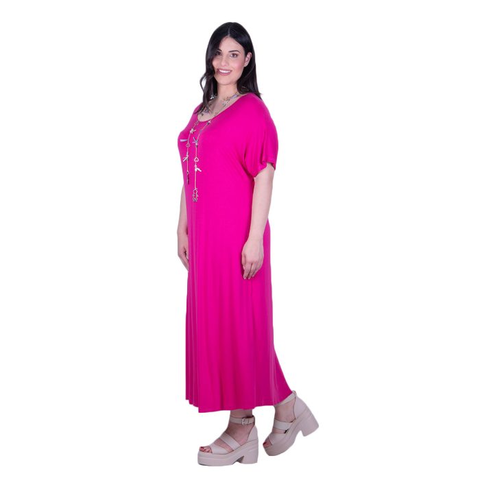 Gomore Φόρεμα Ροζ Με Εμπριμέ Ώχρα Γυναικείο Μακρύ Εβαζέ Με Ζώνη Κοντομάνικο All Day – 52678-R
