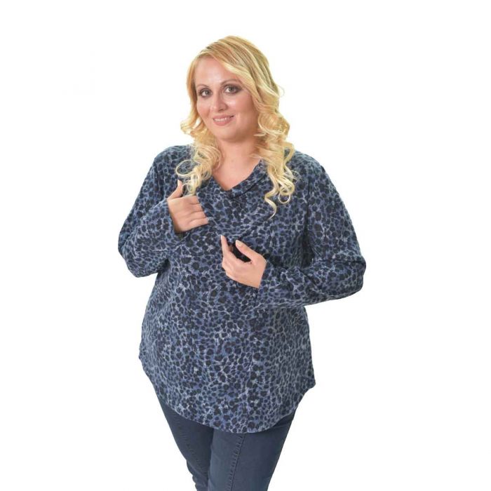 Gomore Μπλούζα Ασπρόμαυρη Γυναικεία Με Γκρι Animal Print Μακριά Εβαζέ All Day XXL – 36102