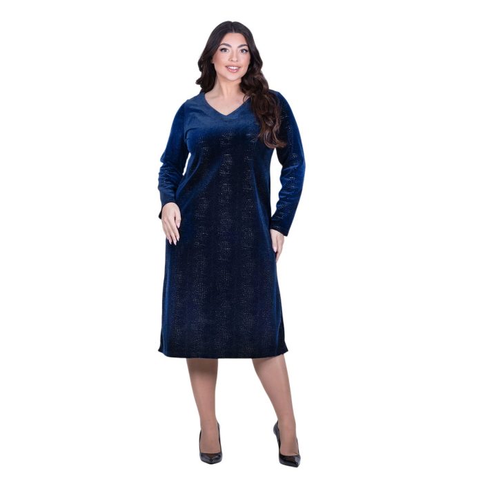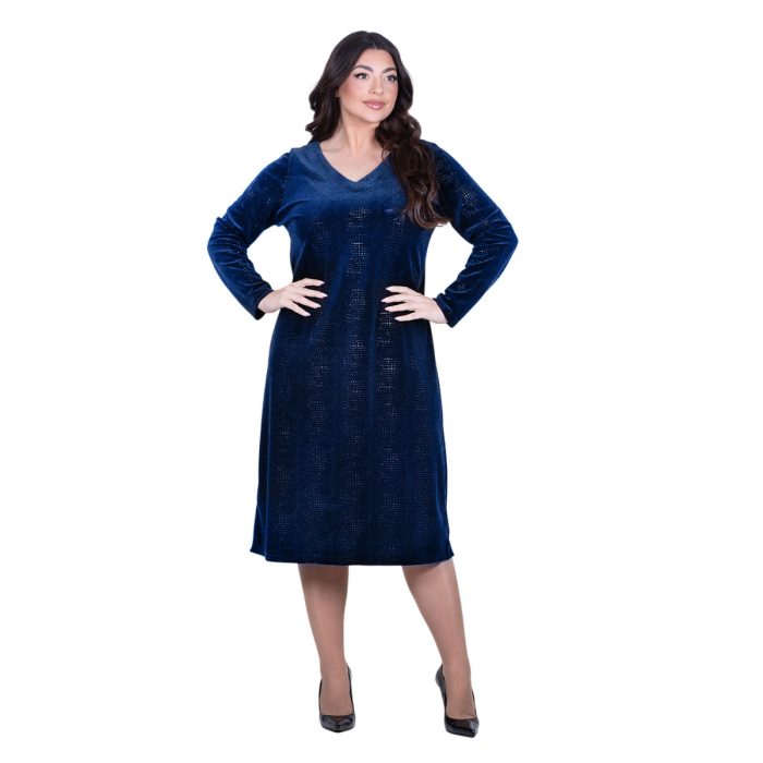 Gomore Φόρεμα Μπλε Σκούρο Γυναικείο Μidi Βραδινό Σε Ίσια Γραμμή XXL – GM-24744-BL
