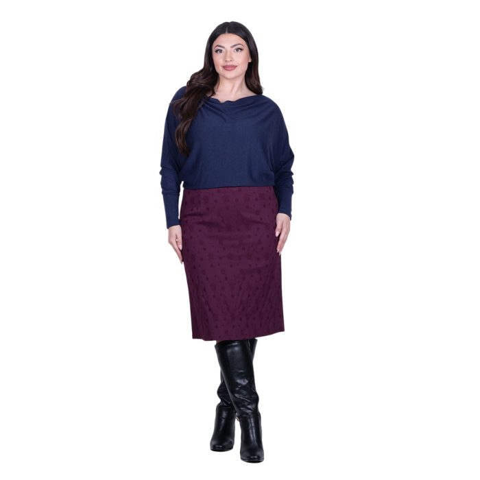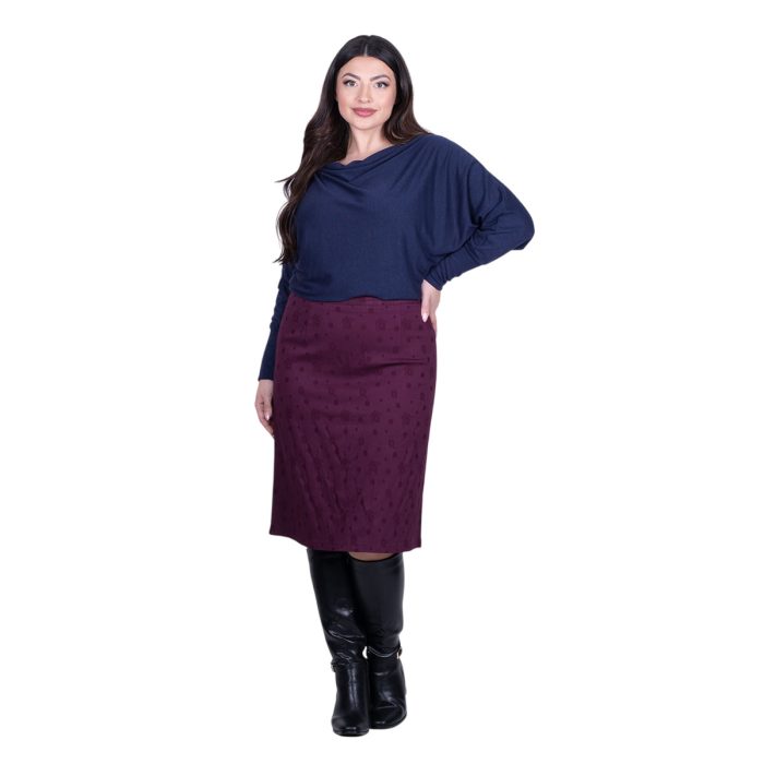 Gomore Φούστα Γκρενά Γυναικεία Midi Ελαστική Ίσια Γραμμή Με Ανάγλυφα Σχέδια Καθημερινή – GM-14703-GN