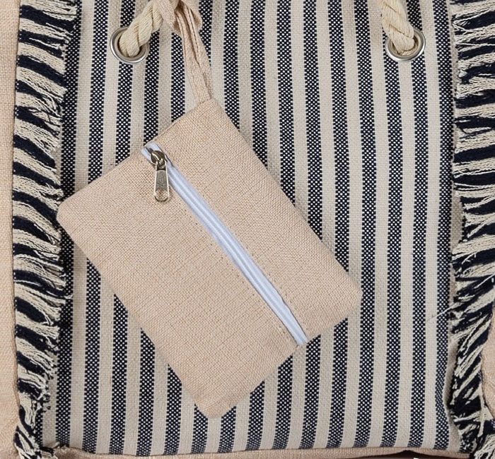 Original price was: €24.90.€15.90Η τρέχουσα τιμή είναι: €15.90.Platinum Τσάντα Παραλίας Μπλε Ριγέ Γυναικεία Με Κρόσσια Σε Ναυτικό Στυλ All Day – 937-24