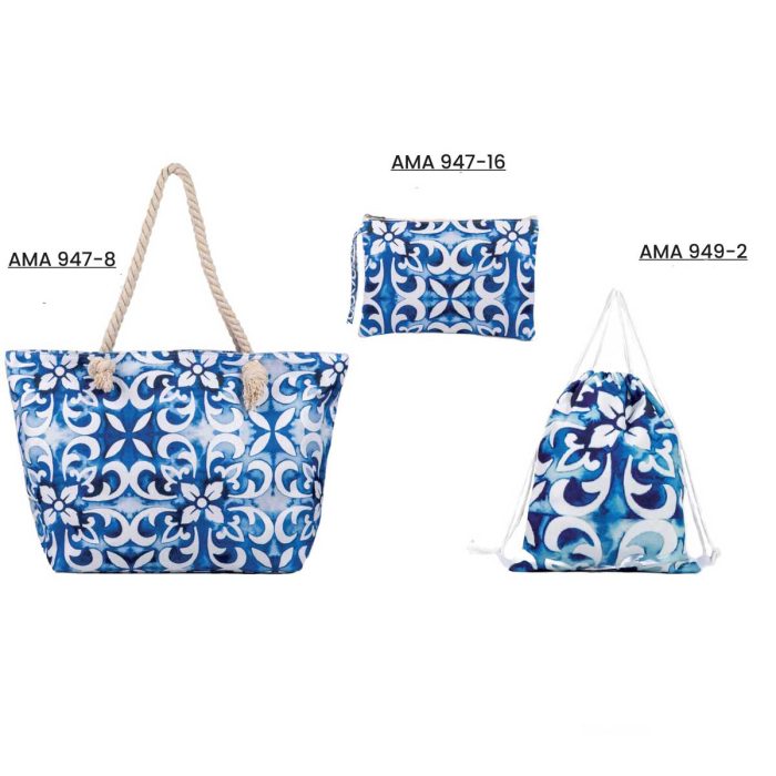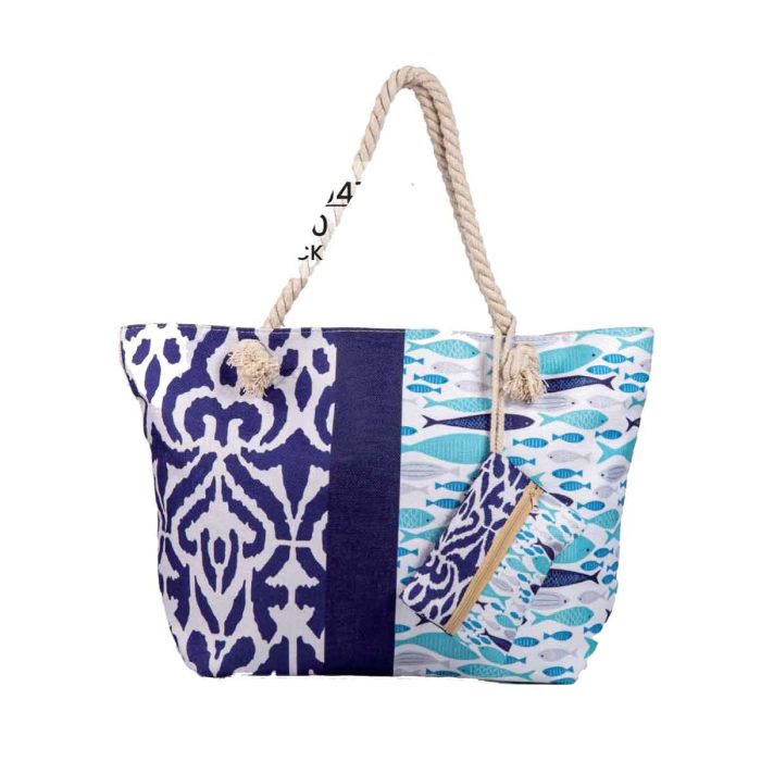 Original price was: €24.90.€14.90Η τρέχουσα τιμή είναι: €14.90.Platinum Τσάντα Παραλίας Μπλε Γυναικεία Με Boho Σχέδιο All Day – 947-8