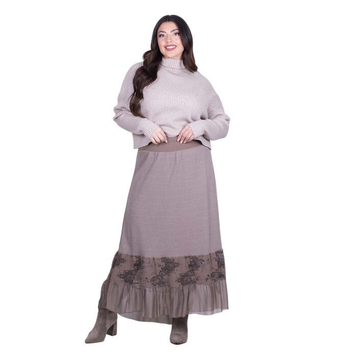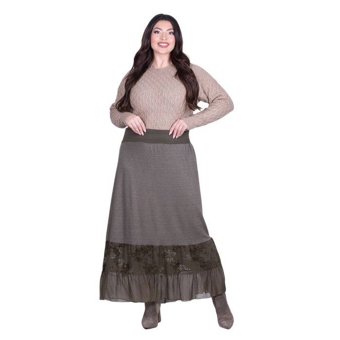 Original price was: €39.90.€24.90Η τρέχουσα τιμή είναι: €24.90.Platinum Φούστα Μόκα Γυναικεία Μακριά Με Ρομαντική Δαντέλα Καθημερινή Free Size – 8930-MG