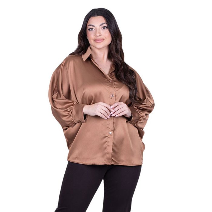 Original price was: €74.90.€49.90Η τρέχουσα τιμή είναι: €49.90.Platinum Πουκάμισο Ταμπά Γυναικείο Σατινέ Μακρύ Με Γιακά All Day Free Size – 5337-42