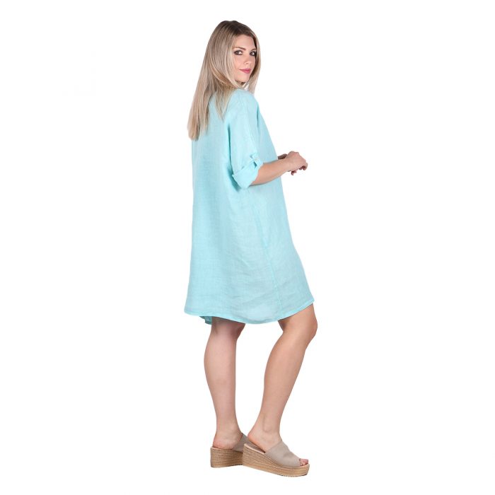Original price was: €49.90.€38.90Η τρέχουσα τιμή είναι: €38.90.Platinum Πουκαμίσα Φόρεμα Aqua Γυναικεία Μακριά Λινή Με Κουμπιά All Day Free Size – LN-107-VE