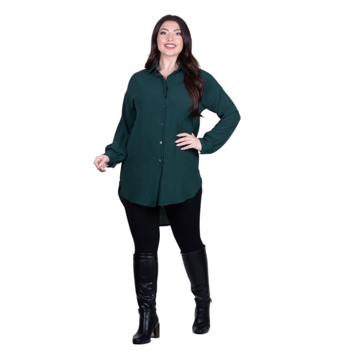 Platinum Πουκάμισο Πράσινο Γυναικείο Mακρυμάνικο Μακρύ Ασύμμετρο All Day Free Size – 5562-GR