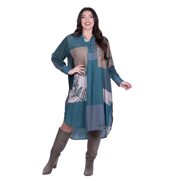 Original price was: €59.90.€44.90Η τρέχουσα τιμή είναι: €44.90.Platinum Φόρεμα – Πουκαμίσα Πετρόλ Με Σχέδια Γυναικεία Μακριά All Day Free Size – 40-5-PR