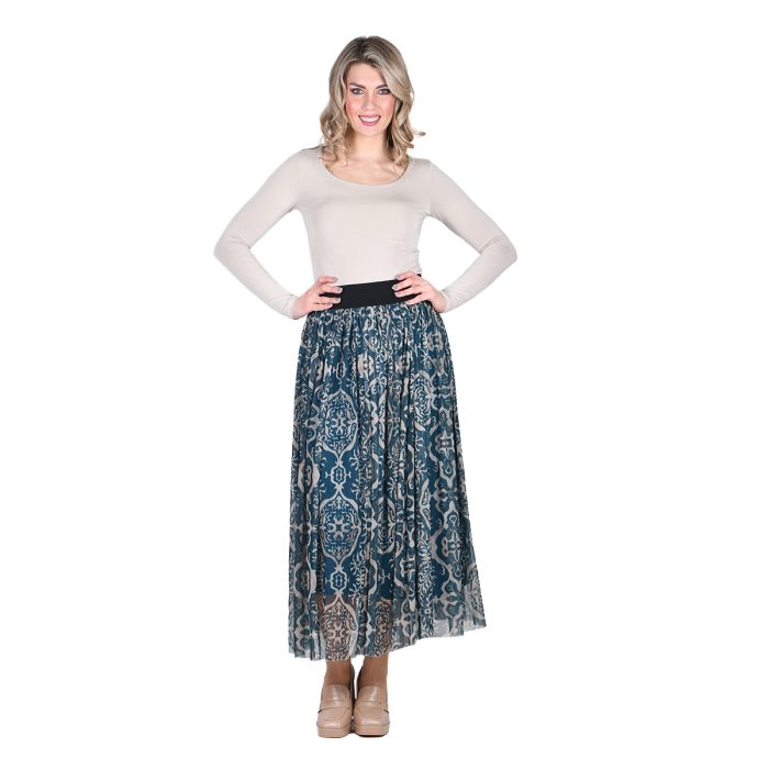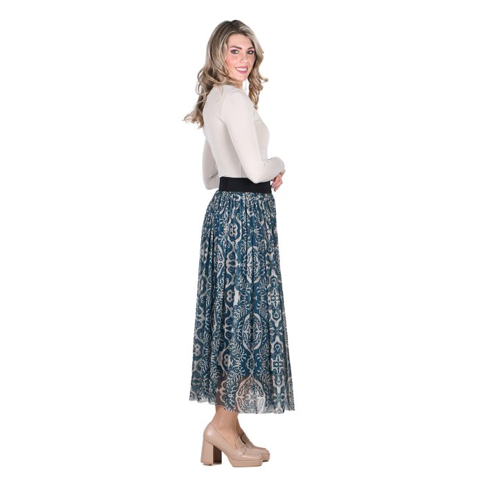 Original price was: €74.90.€54.90Η τρέχουσα τιμή είναι: €54.90.Platinum Φούστα Πετρολ Γυναικεία Midi Εβαζέ Με Πιέτες All Day Free Size – 269-GU-PR