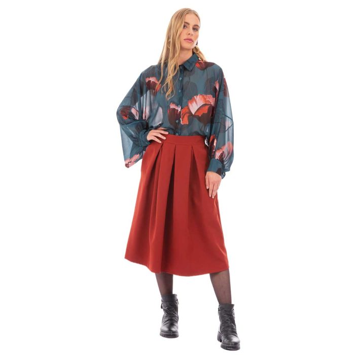 Original price was: €74.90.€44.90Η τρέχουσα τιμή είναι: €44.90.Platinum Φούστα Γήινη Γυναικεία Με Πολύχρωμα Σχέδια Πλισέ Μidi All Day Free Size – IT-4304-52