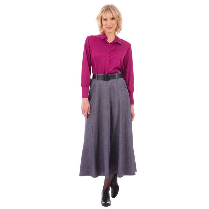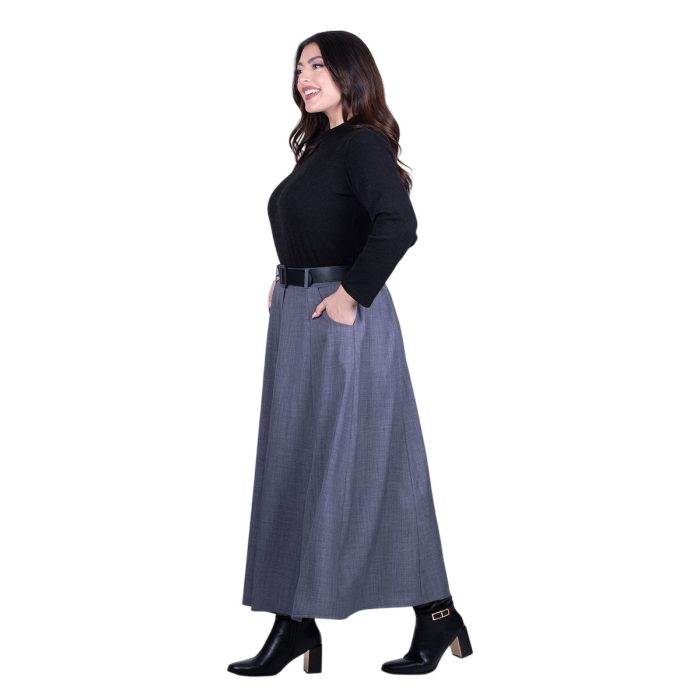 Platinum Φούστα Γκρι Γυναικεία Midi Klos Εβαζέ Με Ζώνη Καθημερινή – IT-383-A-42