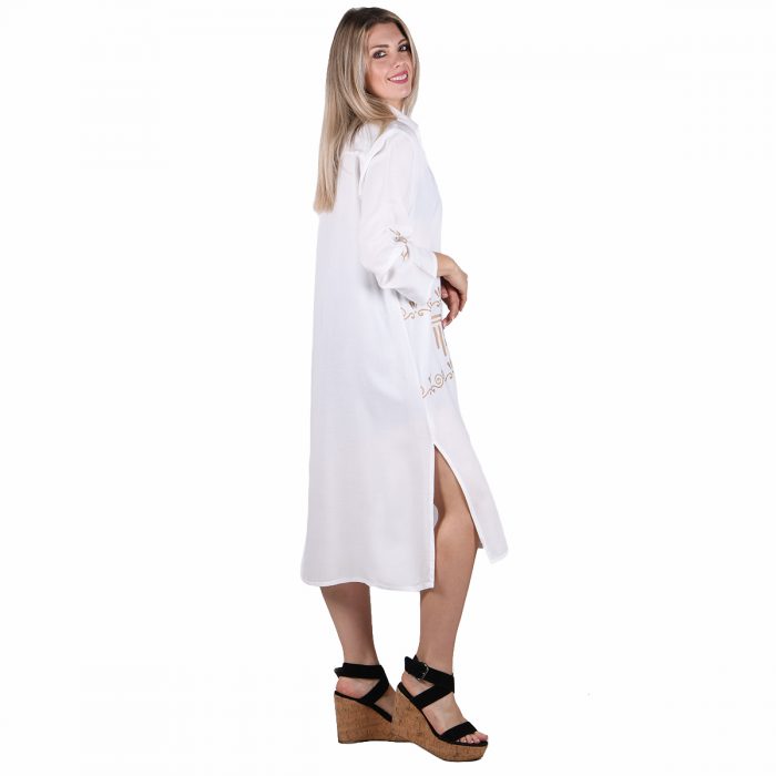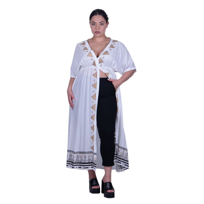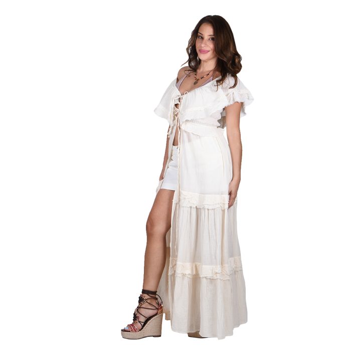 Platinum Φόρεμα – Κιμονό Λευκό Γυναικείο Maxi Με Κιπούρ Δαντέλα & Κουμπιά All Day – SAR-62002-W