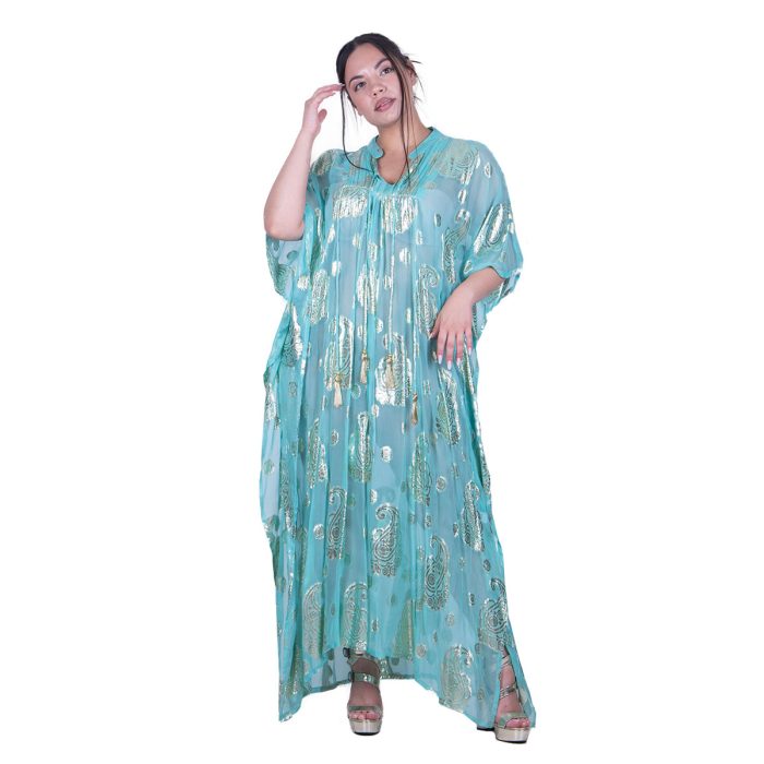 Original price was: €129.90.€79.90Η τρέχουσα τιμή είναι: €79.90.Platinum Καφτάνι – Τουνίκ Aqua Γυναικείο Μακρυά Με Χρυσά Σχέδια Free Size – 423134-ZQ
