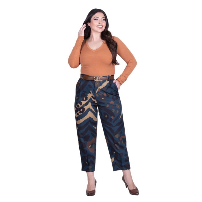 Platinum Παντελόνι Πετρολ Με Γήινα Animal Prtnt Γυναικείο All Day – IT-256-GUP