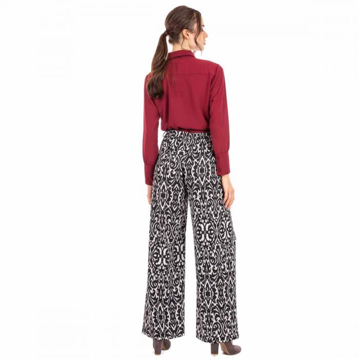 Platinum Παντελόνι Μαύρο Με Εμπριμέ Λευκά Σχέδια Γυναικείο All Day – IT-36-2B