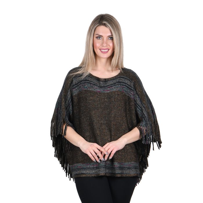 Original price was: €59.90.€39.90Η τρέχουσα τιμή είναι: €39.90.Platinum Poncho Μαύρο Μελανζέ Γυναικείο Με Κρόσσια Free Size – 701-1-B