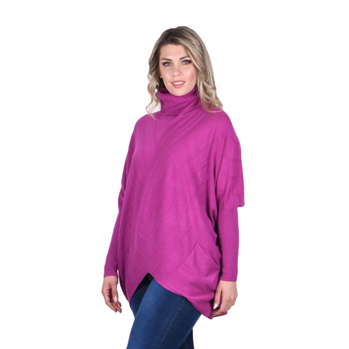Original price was: €62.90.€44.90Η τρέχουσα τιμή είναι: €44.90.Platinum Πουλόβερ – Πόντσο Ματζέντα Με Ζιβάγκο Γυναικείο Casual Φαρδύ All Day Free Size – 8215-MD