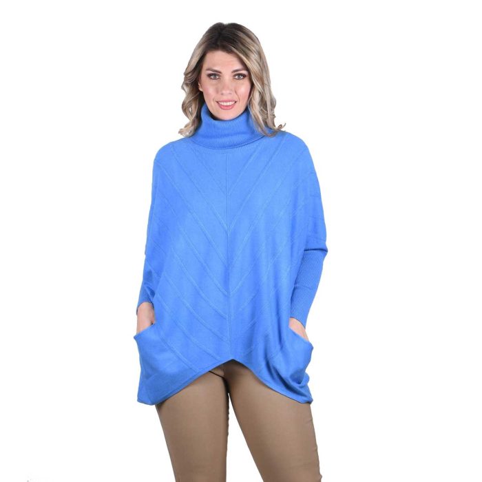 Original price was: €62.90.€44.90Η τρέχουσα τιμή είναι: €44.90.Platinum Πουλόβερ – Πόντσο Γαλάζιο Με Ζιβάγκο Γυναικείο Casual Φαρδύ All Day Free Size – 8215-GA