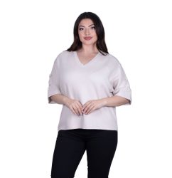Platinum Μπεζ Πουκάμισο Γυναικείο Mακρυμάνικο Με Πιέτες Ασύμμετρο Free Size – IT-1068-Ζxl