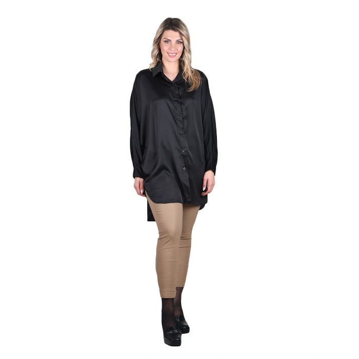 Original price was: €99.90.€79.90Η τρέχουσα τιμή είναι: €79.90.Platinum Πουκάμισα Μαύρη Γυναικεία Mακρυμάνικη Μακριά Σατινέ All Day Free Size – 5042-42-BC
