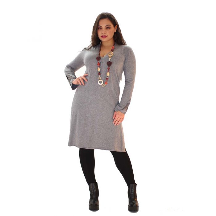 Platinum Φόρεμα Γκρι Mε Πιέτα Γυναικείο Κοντό Εβαζέ Πλεκτό All Day – IT-2310-GR