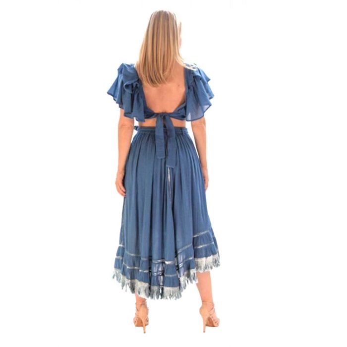 Original price was: €29.90.€17.90Η τρέχουσα τιμή είναι: €17.90.Platinum Μπλούζα Μπλε Ίντιγκο Γυναικεία Εξώπλατη ”Krop Top Βολάν” – SAR-62103-BL