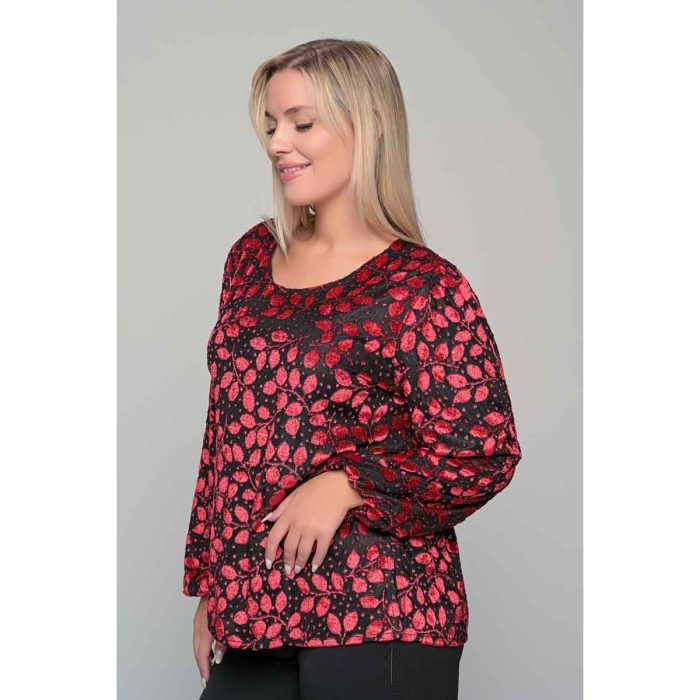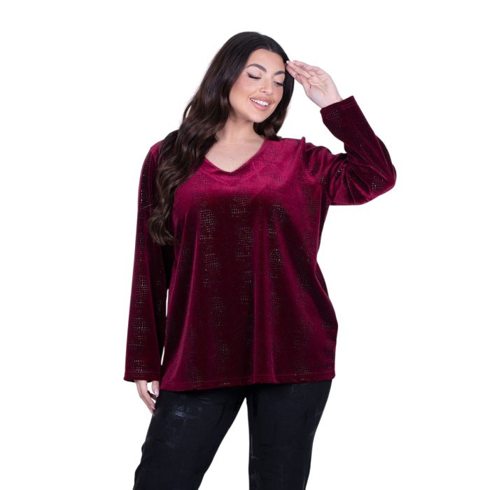 Gomore Μπλούζα Γρενά Γυναικεία Βελούδο Με Ανάγλυφα Σχέδια Βραδινή XXL – 56201-R