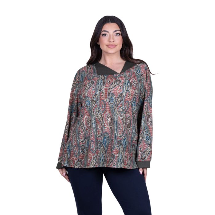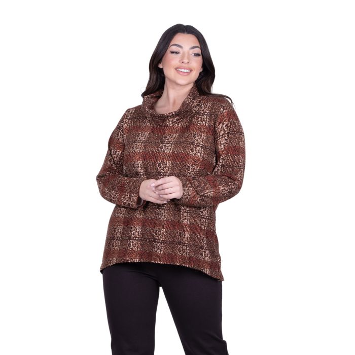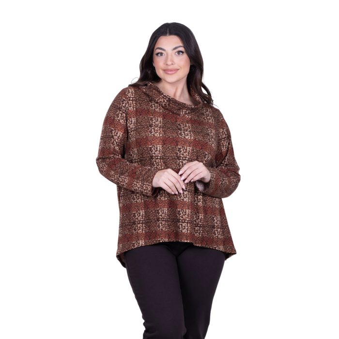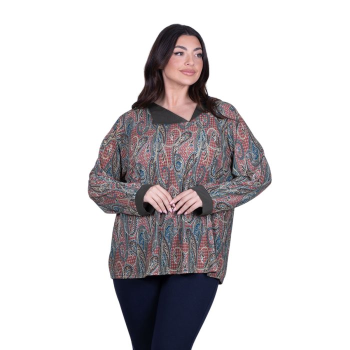 Gomore Μπλούζα Εκάι Με Γήινα Σχέδια Γυναικεία Μακρυμάνικη Ασύμμετρη All Day – GM-24958