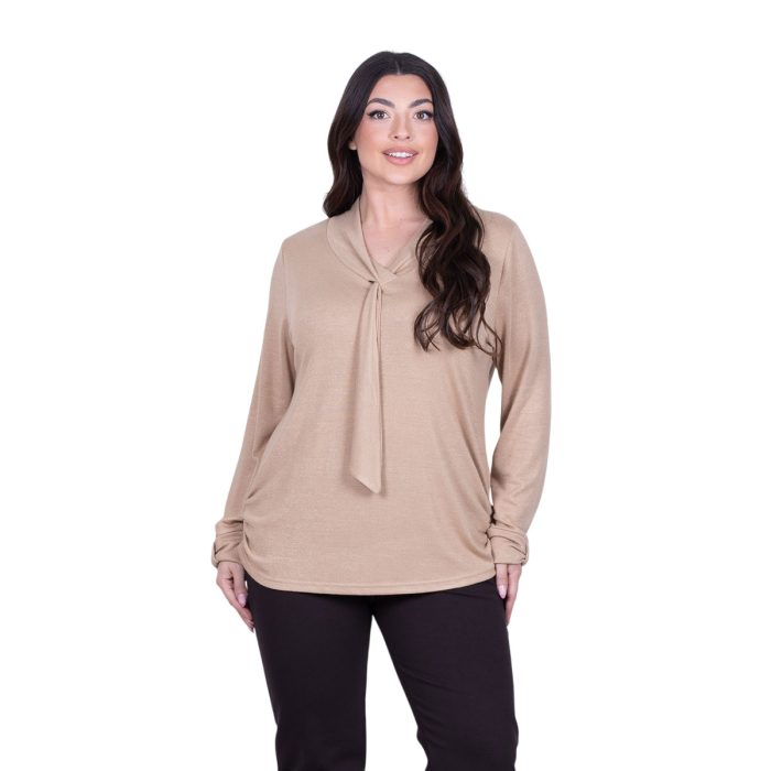 Gomore Μπλούζα Μπεζ Γυναικεία Με Γραβάτα Κλασική Καθημερινή – GM-04145-BZ
