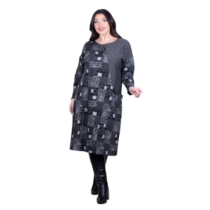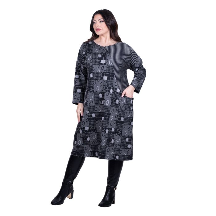 Original price was: €49.90.€34.90Η τρέχουσα τιμή είναι: €34.90.Platinum Φόρεμα Μαύρο – Γκρι Γυναικείο Μidi Με Γεωμετρικά All Day Free Size – FS-39194