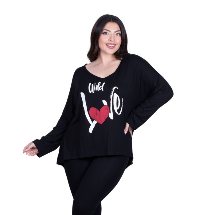 Gomore Μπλούζα Μαύρη ”Wild Love” Γυναικεία Εβαζέ Casual All Day – 24970-BC