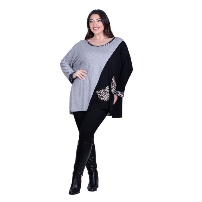 Original price was: €44.90.€34.90Η τρέχουσα τιμή είναι: €34.90.Fairyland Μπλούζα Γκρι – Μαύρο Γυναικεία Patchwork All Day Free Size – FM-7122