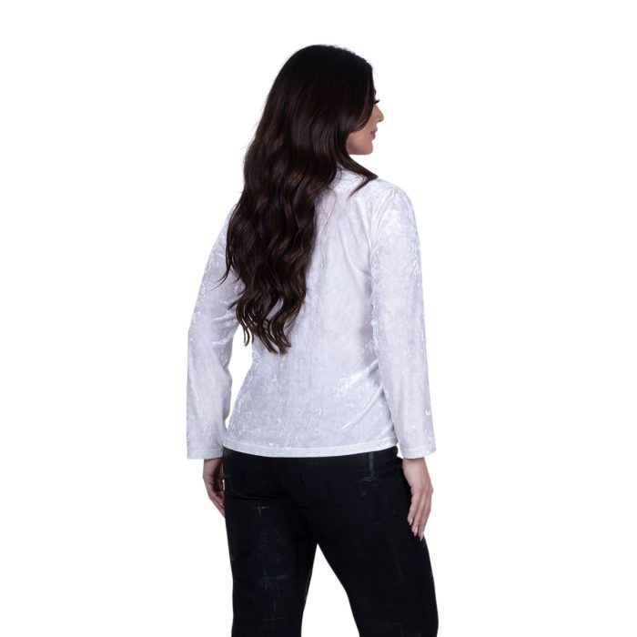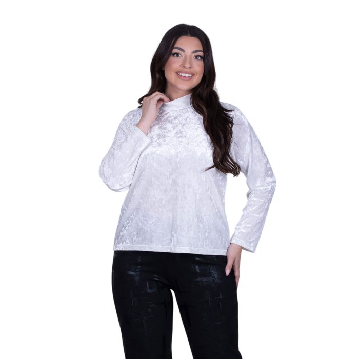 Gomore Μπλούζα Λευκή Γυναικεία Με Ψηλό Λαιμό Βελουτέ All Day – 36126-MD