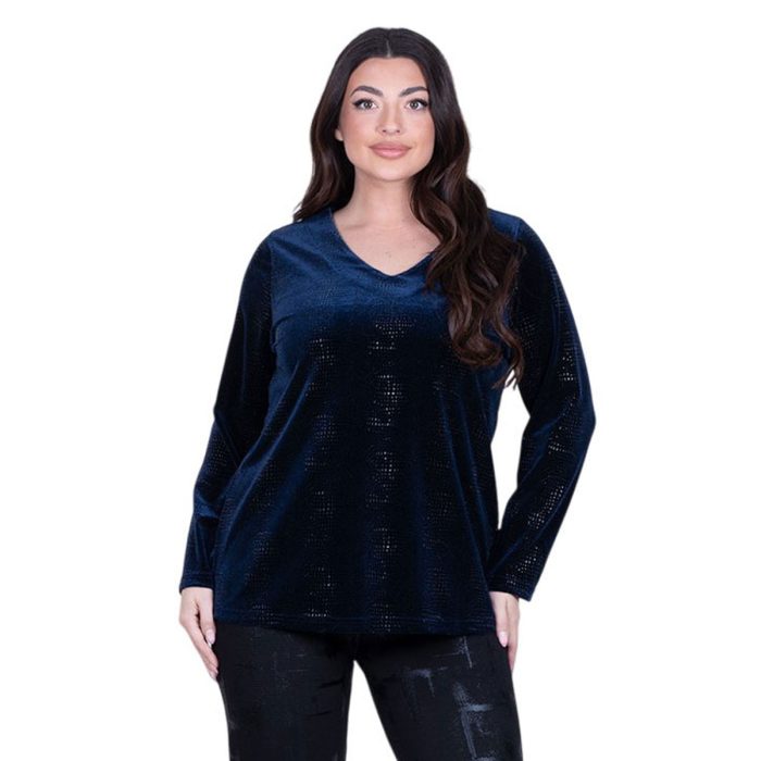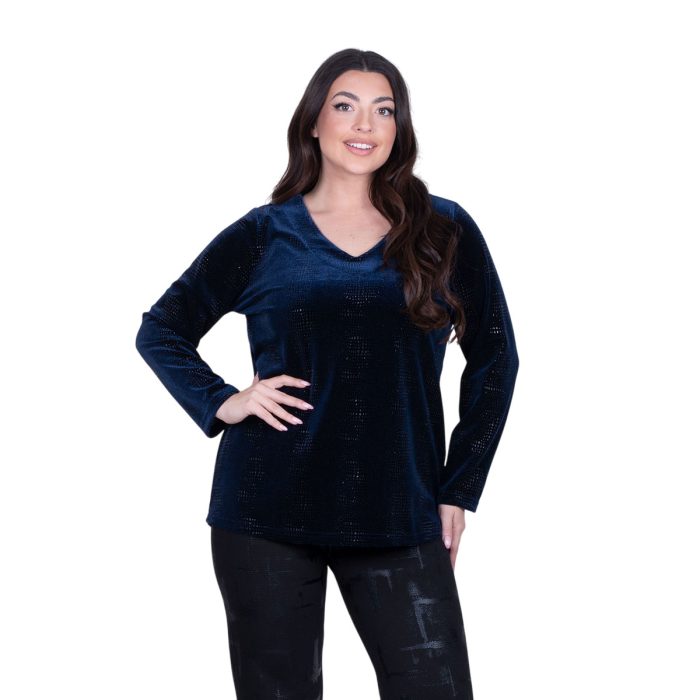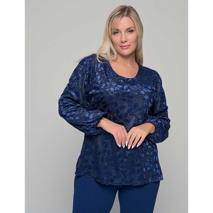 Gomore Μπλούζα Μπλε Γυναικεία Βελούδο Με Ανάγλυφα Σχέδια Βραδινή XXL – GM-56201