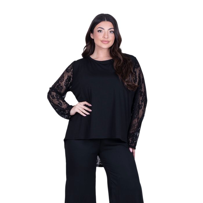 Gomore Μπλούζα Μαύρη Με Δαντέλα Γυναικεία Μακρυμάνικη Ασύμμετρη All Day – GM-24910