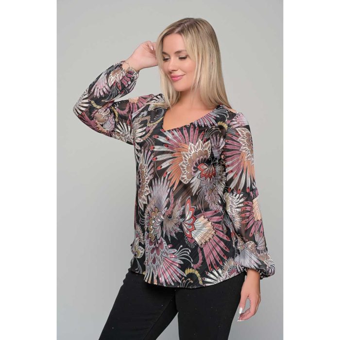 Gomore Μπλούζα Μαύρη Γυναικεία Με Εμπριμέ Σχέδια & Lurex Βραδινή XXL – 14219