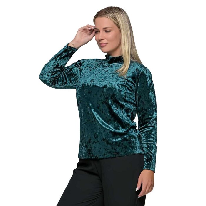 Gomore Μπλούζα Πράσινη Γυναικεία Με Ψηλό Λαιμό Βελουτέ All Day – GM-36126-GR