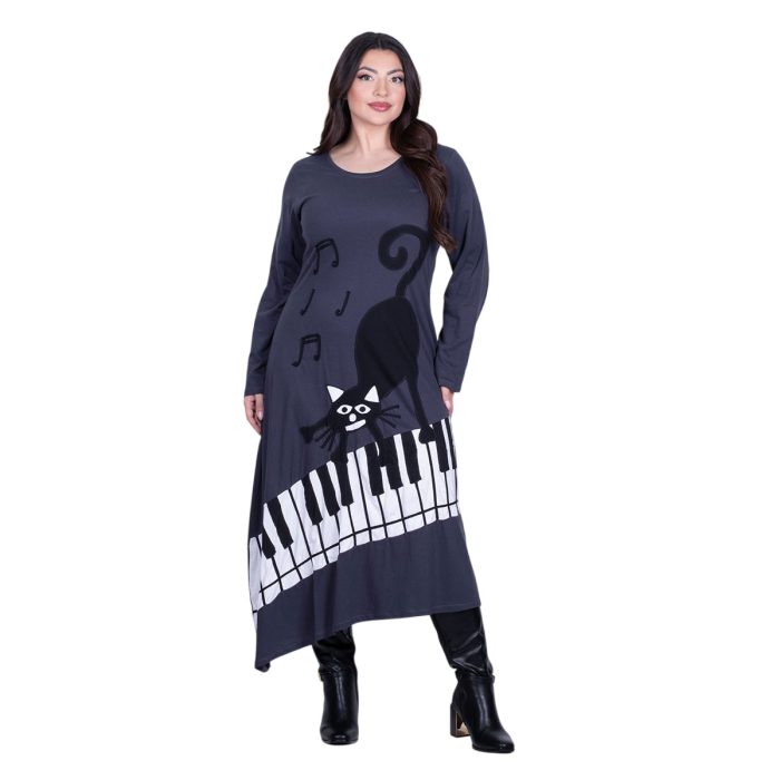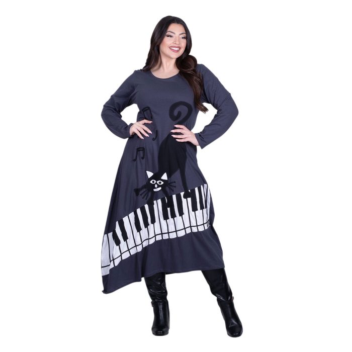 Original price was: €119.90.€69.90Η τρέχουσα τιμή είναι: €69.90.Platinum Φόρεμα Γκρι Γυναικείο Απλικέ Midi ”Γάτα Στο Πιάνο Patchwork” All Day Free Size – PL-835-GR