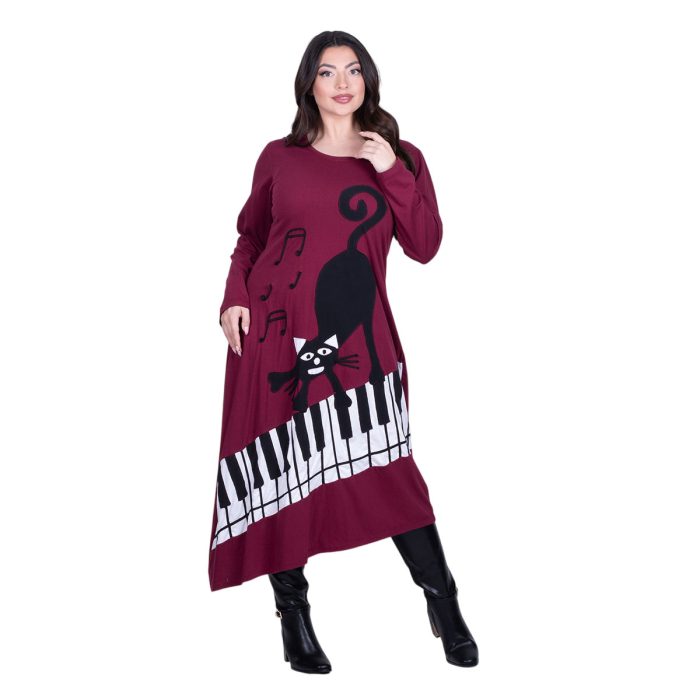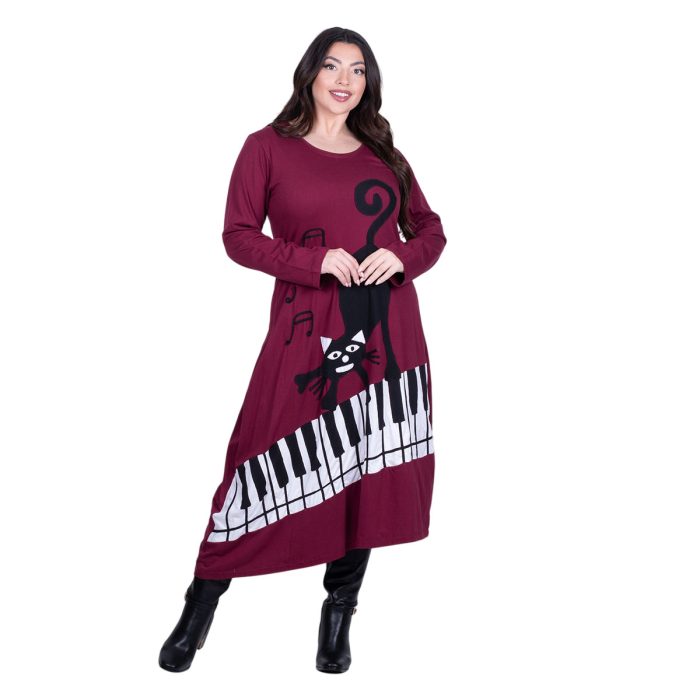 Original price was: €79.90.€49.90Η τρέχουσα τιμή είναι: €49.90.Platinum Φόρεμα Μπορντό Γυναικείο Απλικέ Midi ”Γάτα Στο Πιάνο Patchwork” All Day Free Size – PL-835-BR
