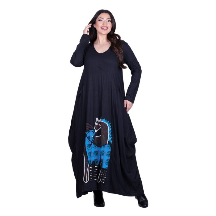 Platinum Φόρεμα Μαύρο Γυναικείο Απλικέ Maxi ”Ερωτευμένα Άλογα Patchwork” All Day – PL-233-BC