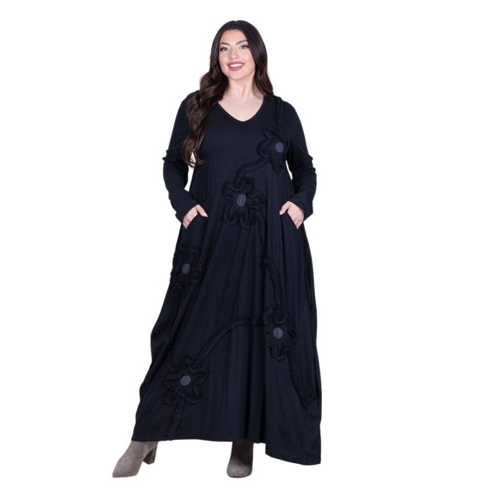 Platinum Φόρεμα Μαύρο Γυναικείο Απλικέ Maxi ”Υφασμάτινα Λουλούδια” All Day – PL-840-BC