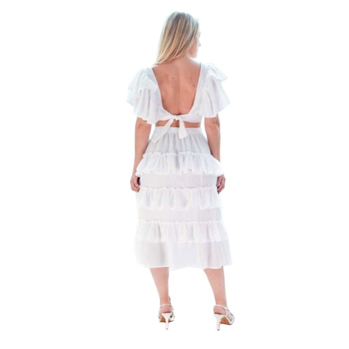 Original price was: €44.90.€36.90Η τρέχουσα τιμή είναι: €36.90.Platinum Μπλούζα Λευκή Γυναικεία Εξώπλατη ”Krop Top Βολάν” All Day – SAR-62103-W