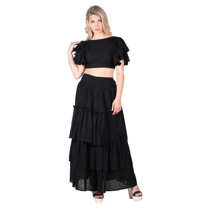 Original price was: €24.90.€17.90Η τρέχουσα τιμή είναι: €17.90.Platinum Μπλούζα Μαύρη Γυναικεία Καλοκαιρινή ”Krop Top Βολάν” All Day – SAR-62103-BC