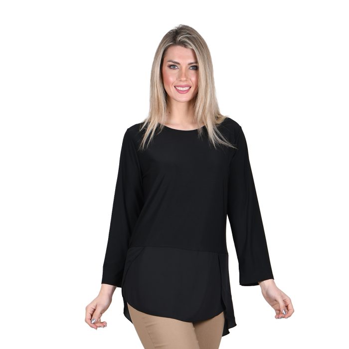 Gomore Μπλούζα Μαύρη Με Δαντέλα Γυναικεία Μακρυμάνικη Ασύμμετρη All Day – GM-24910